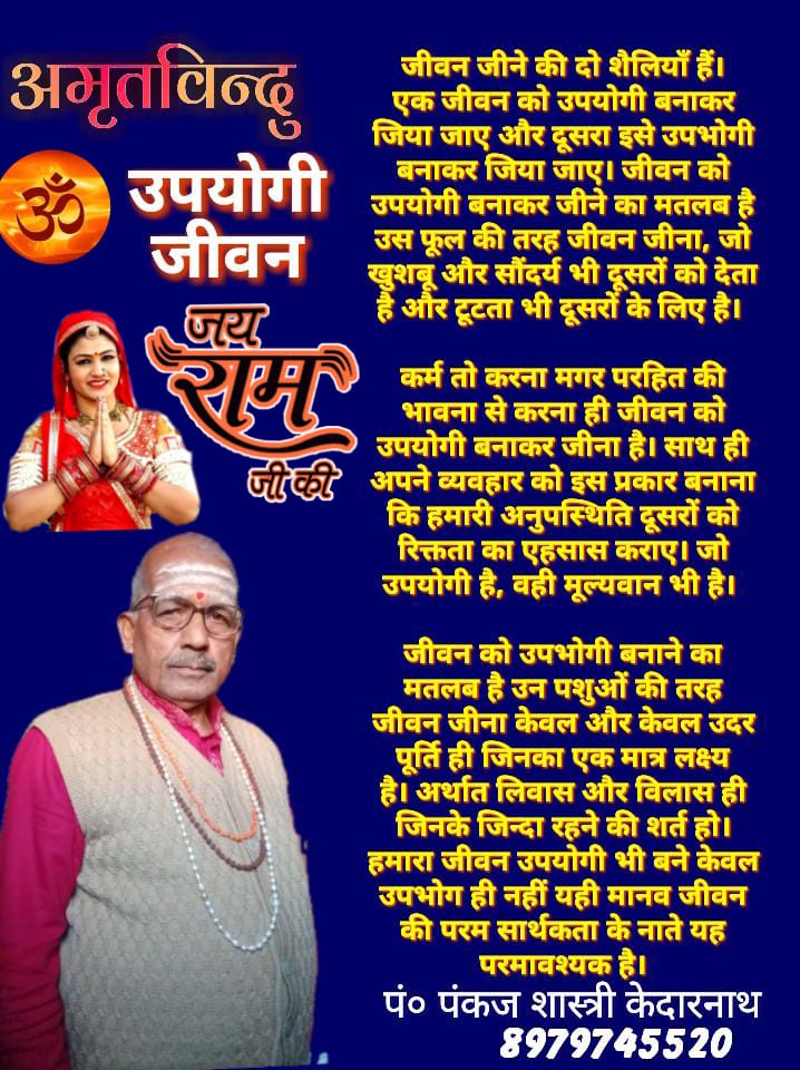 National Uttarakhand लिबास और विलास ही जिनका लक्ष्य हो, वह जीवन अनुपयोगी ukadmin March 19, 2023 1 min read news Tags: अमृत बिंदु शुभ प्रभात सुविचार Continue Reading Previous आज का राशिफल: पं. राजेन्द्र प्रसाद जी (पंकज शास्त्री) केदारनाथ (देवभूमि उत्तराखण्ड) हिमालयNext आज का राशिफल: पं. राजेन्द्र प्रसाद जी (पंकज शास्त्री) केदारनाथ (देवभूमि उत्तराखण्ड) हिमालय Leave a Reply Cancel replyYour email address will not be published. Required fields are marked *Comment * Name * Email * Website Save my name, email, and website in this browser for the next time I comment. More Stories 1 min read Uttarakhand आकाशीय बिजली गिरने से रेस्टोरेंट में लगी आग April 5, 2026 ukadmin 1 min read National Uttarakhand अब गंगोत्री मंदिर में नहीं होंगे लाइव दर्शन, मंदिर समिति ने लगाई रोक April 5, 2026 ukadmin 1 min read Uttarakhand तापस चक्रवर्ती की पुस्तक “हम्पी: उत्कर्ष से अपकर्ष तक” का हुआ लोकार्पण April 5, 2026 ukadmin