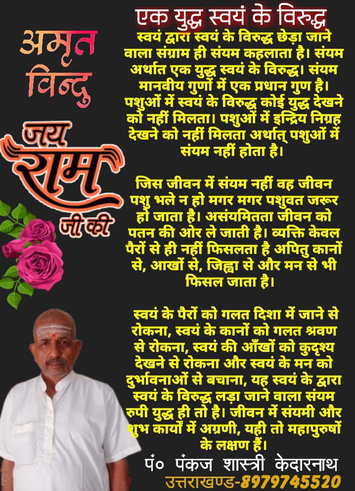 National Uttarakhand संयम अर्थात एक युद्ध स्वयं के विरुद्ध ukadmin May 4, 2023 1 min read news Tags: shubh prabhat Continue Reading Previous आज का राशिफल: पं. राजेन्द्र प्रसाद जी (पंकज शास्त्री) केदारनाथ (देवभूमि उत्तराखण्ड) हिमालयNext प्रेमचंद अग्रवाल मारपीट प्रकरण: पुलिस ने मंत्री को नहीं बनाया आरोपी, पीआरओ पर मुकदमा Leave a Reply Cancel replyYour email address will not be published. Required fields are marked *Comment * Name * Email * Website Save my name, email, and website in this browser for the next time I comment. More Stories 1 min read Uttarakhand world सौरभ मैठाणी टोक्यो जापान में बिखेरेंगे गढ़वाली संस्कृति के रंग January 29, 2026 ukadmin 1 min read Uttarakhand शालनियों के कहानी संग्रह ‘शाम–सवेरे’ का हुआ लोकार्पण January 16, 2026 ukadmin 1 min read Uttarakhand उत्तरांचल प्रेस क्लब की कार्यकारिणी को मुख्यमंत्री ने दिलाई शपथ January 9, 2026 ukadmin