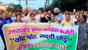 उत्तराखंड प्रदेश कांग्रेस अध्यक्ष करण माहरा ने इस अभियान को राजधानी में “वोट चोर गद्दी छोड़ो” संदेश के साथ भव्य कैंडल मार्च आयोजित किया गया। इस मौके पर राष्ट्रीय सचिव क़ाज़ी निजामुद्दीन ने कहा कि राहुल गांधी का यह अभियान देश में वोट चोरी की राजनीति को खत्म करने का संकल्प है। देहरादून से इसकी गूंज पूरे उत्तराखंड में जाएगी।